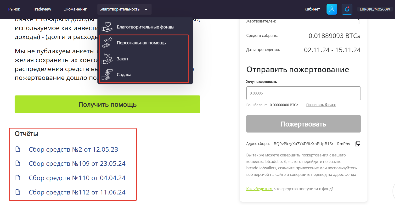 В программах помощи людям, после каждого распределения средств мы размещаем отчёты на сайте биржи.